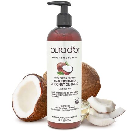 PURA D’OR Organic Fractionated Coconut Oil (16oz) USDA Certified 100% Pure & Natural Carrier Oil – Moisturizing For Face, Skin & Hair, Men &…